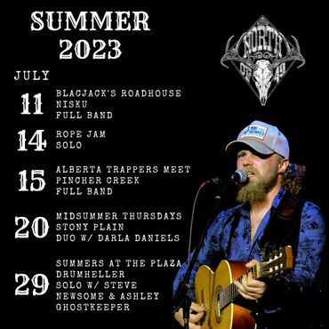 North of 49 is a band built on years of road-worn experience, featuring a lineup of seasoned musicians: Featuring Mat Patenaude on bass, Jordan Leden on guitar, Darla Daniels on fiddle, and Adam James on keys.